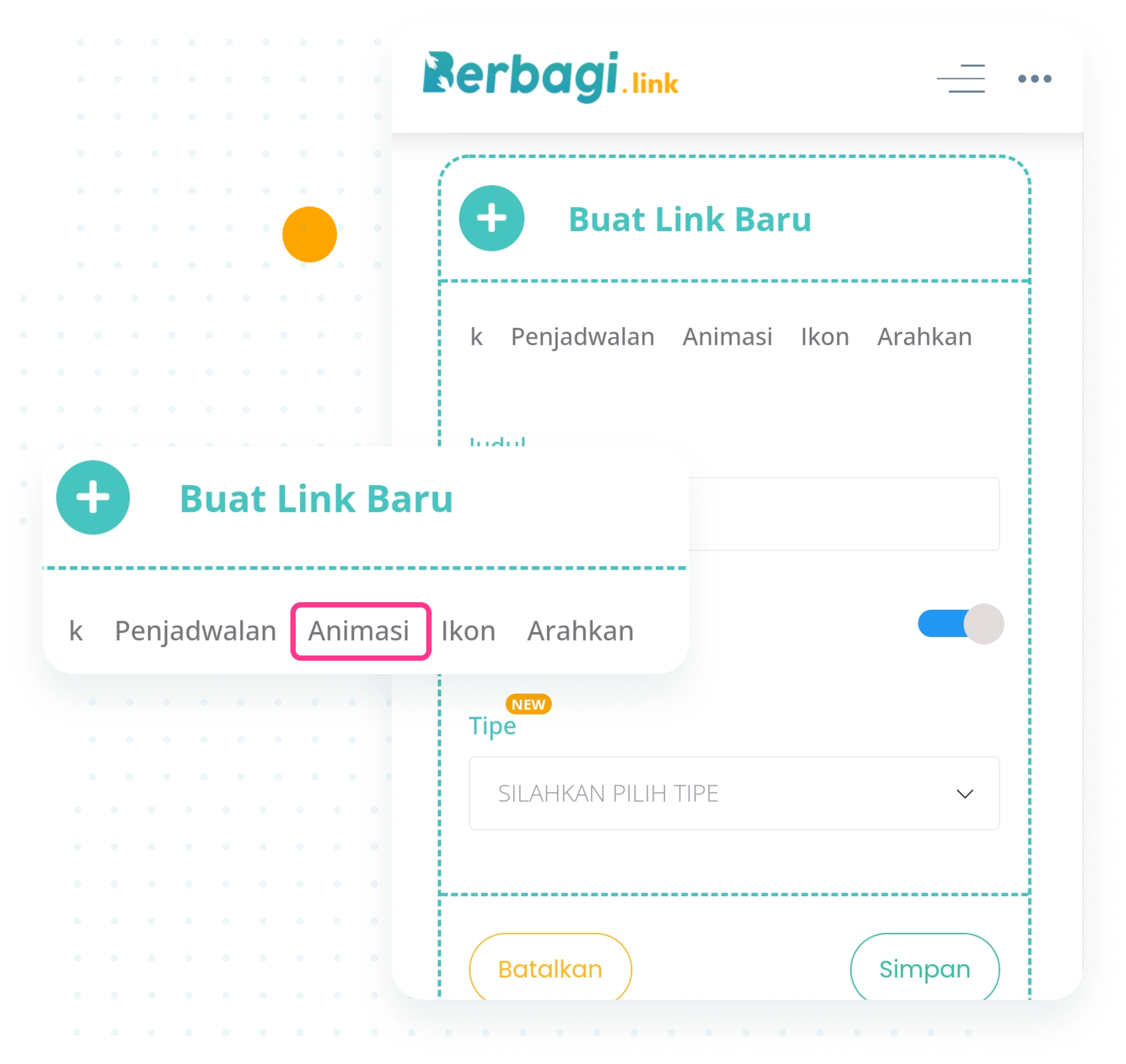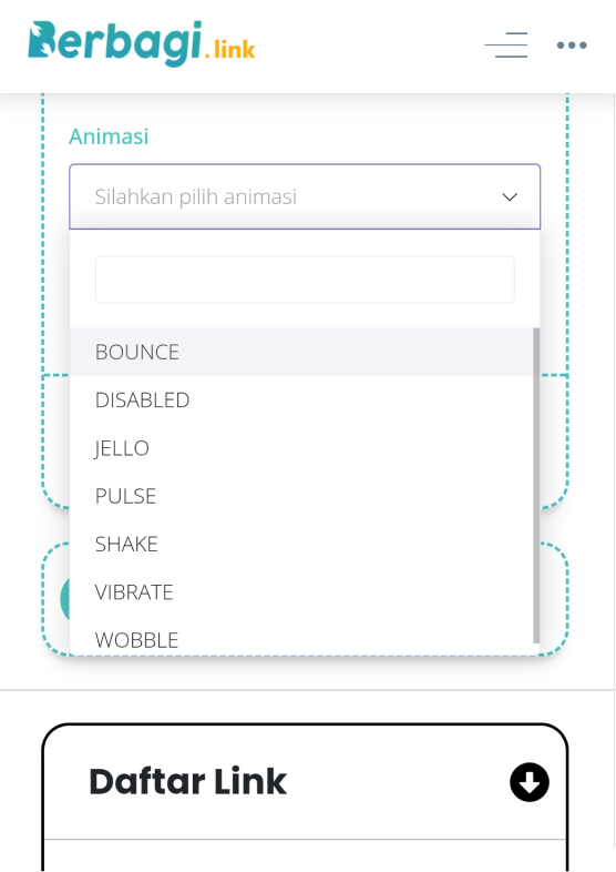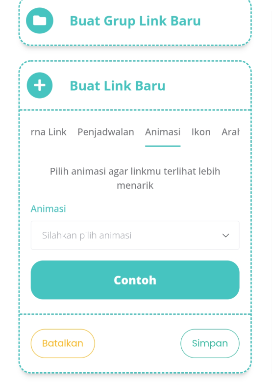 1. Setelah Klik tab “Buat Link Baru”, klik menu “Animasi”