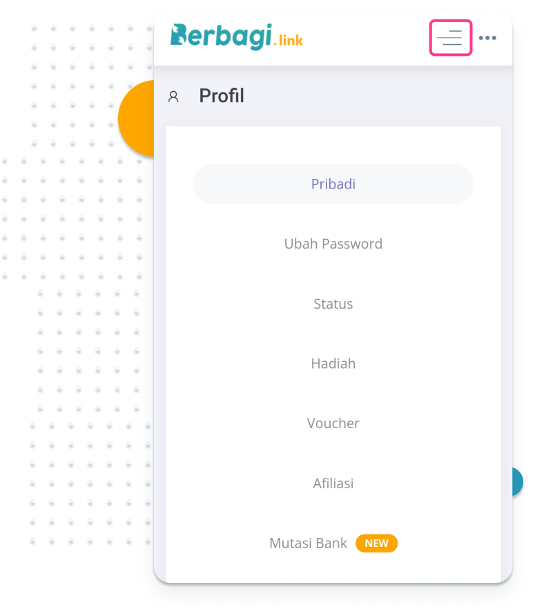 1. Ketika masuk Profil, klik ikon Menu pada bagian kanan atas