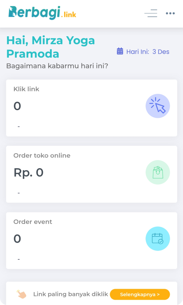 Dashboard Berbagi.link kini lebih memiliki fungsi