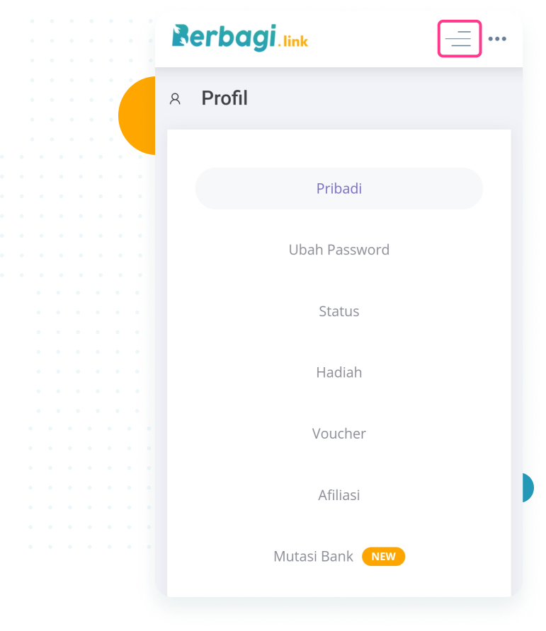 1. Ketika masuk Profil, klik ikon Menu pada bagian kanan atas