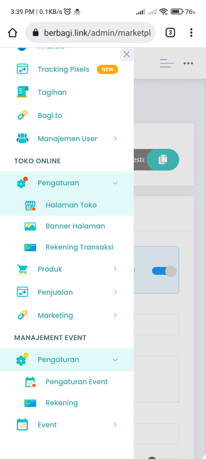4. Setelah selesai, lanjutkan pada menu Banner, dan Rekening Transaksi.