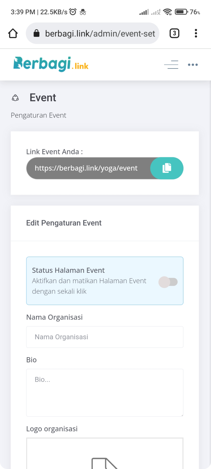3. Pilih bagian Pengaturan event, lalu isi kelengkapan data anda.