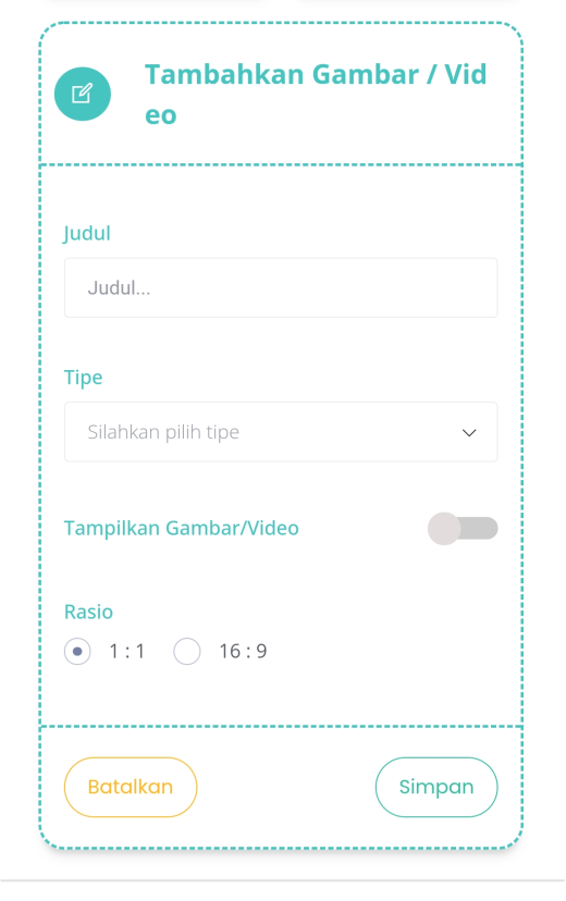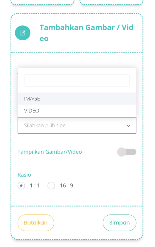 4. Tentukan Rasio Gambar/Video lalu klik tombol simpan