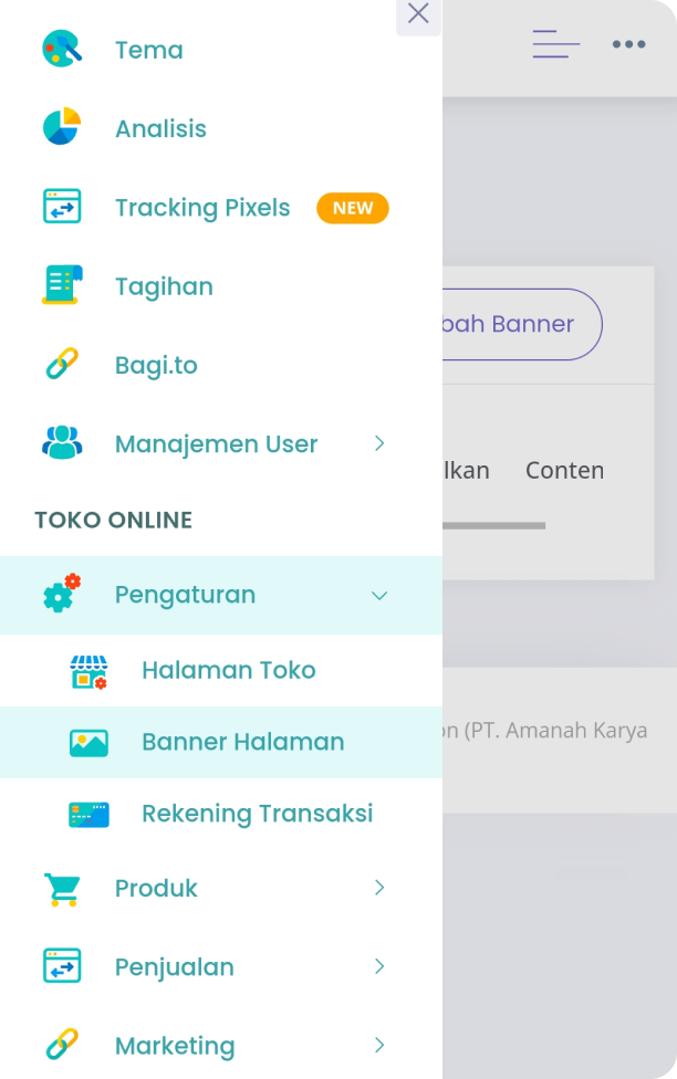 2. Klik “Pengaturan” lalu “Banner Halaman”