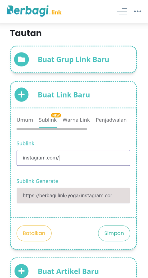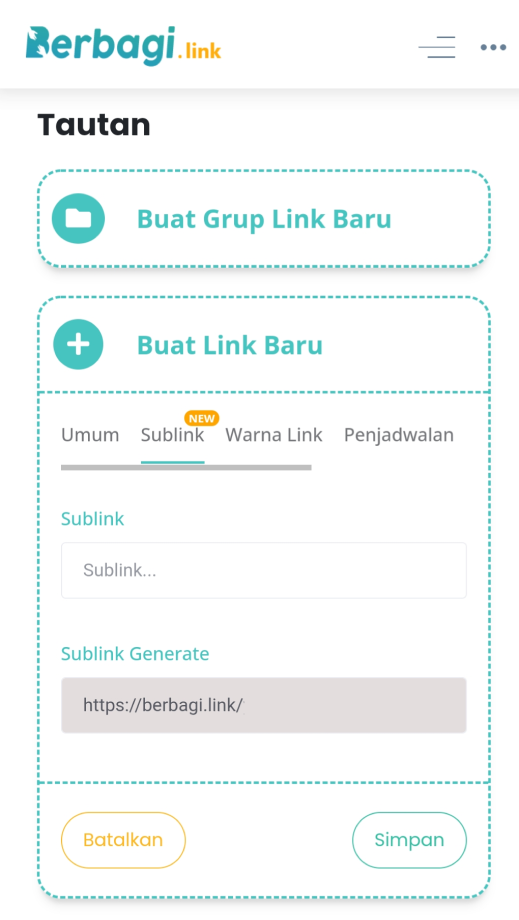 2. Setelah selesai mengisi “Umum” pilih menu Sublink.