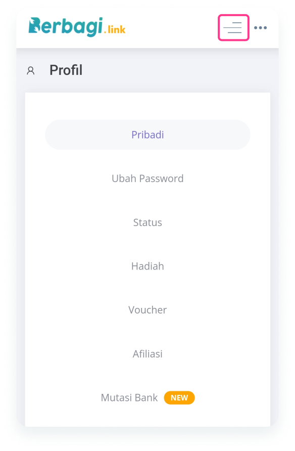 1. Ketika masuk Profil, klik ikon Menu bagian kanan atas